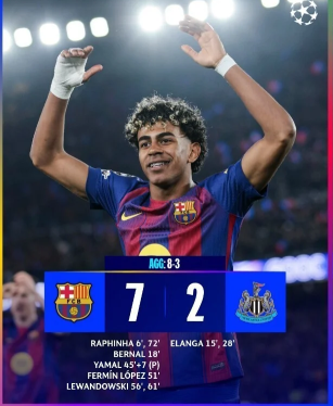 I anden kamp i Champions Leagues ottendedelsfinale var Barcelona vært for Newcastle United. Statistisk set var dette første gang siden 2011, at fem Barcelona-spillere havde scoret i en enkelt Champions League-knockout-kamp. Både Rafinha og Lewandowski, iført deres billige fodboldtrøjer, scorede to gange. hvilket hjalp Barcelona til en 7-2-sejr og avancement til kvartfinalen.